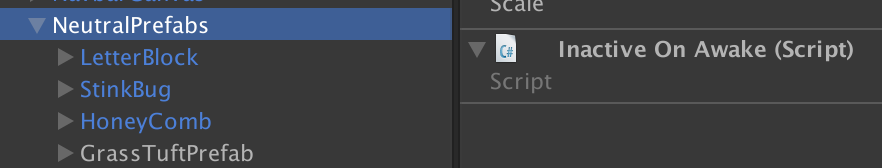 Most of our scenes have a GameOject called NeutralPrefabs. This game object usually has the InactiveOnAwake script attached and has children game objects that will be spawned during the game. See the article on NeutralPrefabs for more information.
